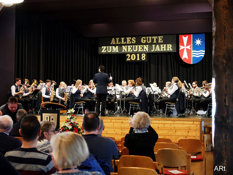 Etwa 300 Teilnehmer schätzt man in diesem Jahr. Kaum ein Stuhl bleibt leer – viele müssen stehen. 2017 wurde die Veranstaltung musikalisch hervorragend umrahmt vom Blasorchester des Musikvereins Unterbaldingen. Nicht nur DASS, sondern auch WIE Bürgermeister Klumpp seine Gäste begrüßt, ist praktizierte Bürgernähe. Für jeden hat er ein freundliches Wort, die meisten kennt und begrüßt er mit Namen.